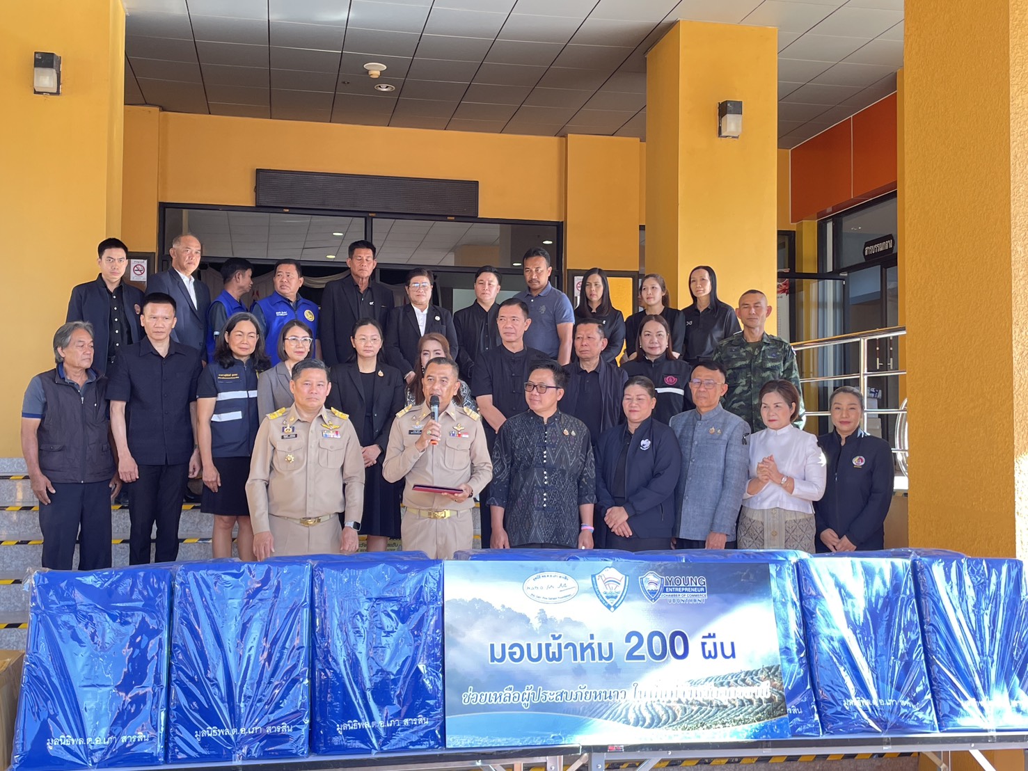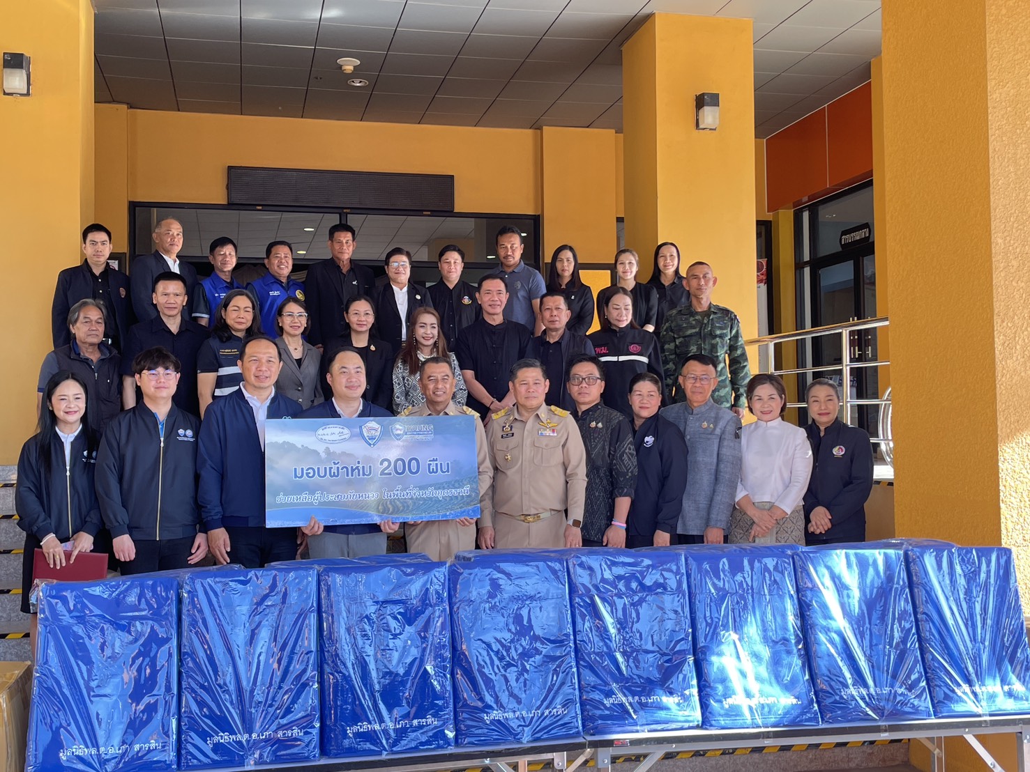 | วันพฤหัสบดีที่ 25 ธันวาคม 2568 เวลา 9.00 น. บริเวณหน้าเสาธงชาติ ศาลากลางจังหวัด นายสาจิต จันทรศิริ ท้องถิ่นจังหวัด ร่วมพิธีรับมอบผ้าห่มกันหนาว จำนวน 200 ผืน จาก มูลนิธิ พล.ต.อ เภา สารสิน ผ่าน หอการค้าจังหวัดอุดรธานี เพื่อนำไปช่วยเหลือ ประชาชนที่ประสบภัยหนาว โดยมี นายราชันย์ ซุ้นหั้ว ผู้ว่าราชการจังหวัด เป็นประธานรับมอบ |
