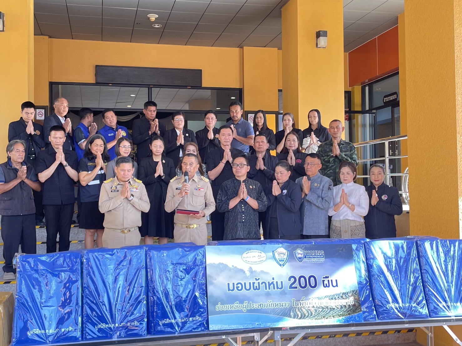 | ร่วมพิธีรับมอบผ้าห่มกันหนาว |