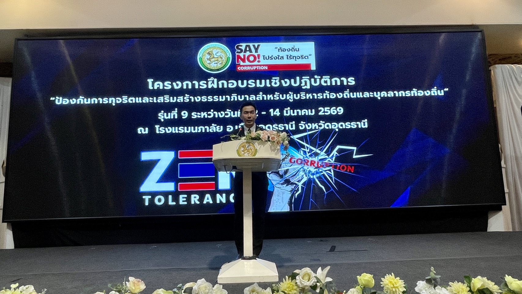 | วันพฤหัสบดีที่ 12 มีนาคม 2569 เวลา 9.30 น นายสาจิต จันทรศิริ ท้องถิ่นจังหวัด / ผอ.กลุ่มงาน และ หัวหน้าฝ่ายบริหารทั่วไป สำนักงานส่งเสริมการปกครองท้องถิ่นอุดรธานี ร่วมเป็นเกียรติ โครงการฝึกอบรมเชิงปฏิบัติการป้องกันการทุจริตและเสริมสร้างธรรมาภิบาลสำหรับผู้บริหารท้องถิ่นและบุคลากรท้องถิ่น รุ่นที่ 9 โดยมีผู้เข้าร่วมอบรมจาก 5 จังหวัด ได้แก่ หนองคาย/ นครพนม /สกลนคร ขอนแก่น/ มุกดาหาร ณ โรงแรมนภาลัย อ.เมืองอุดรธานี โดยมี นายประเสริฐ สุภัครพงษ์กุล ผู้อำนวยการสถาบันพัฒนาบุคลากรท้องถิ่น เป็นผู้กล่าวรายงาน และมี นายธนนท์ พรรพีภาส รองอธิบดีกรมส่งเสริมการปกครองท้องถิ่น เป็น ประธาน |