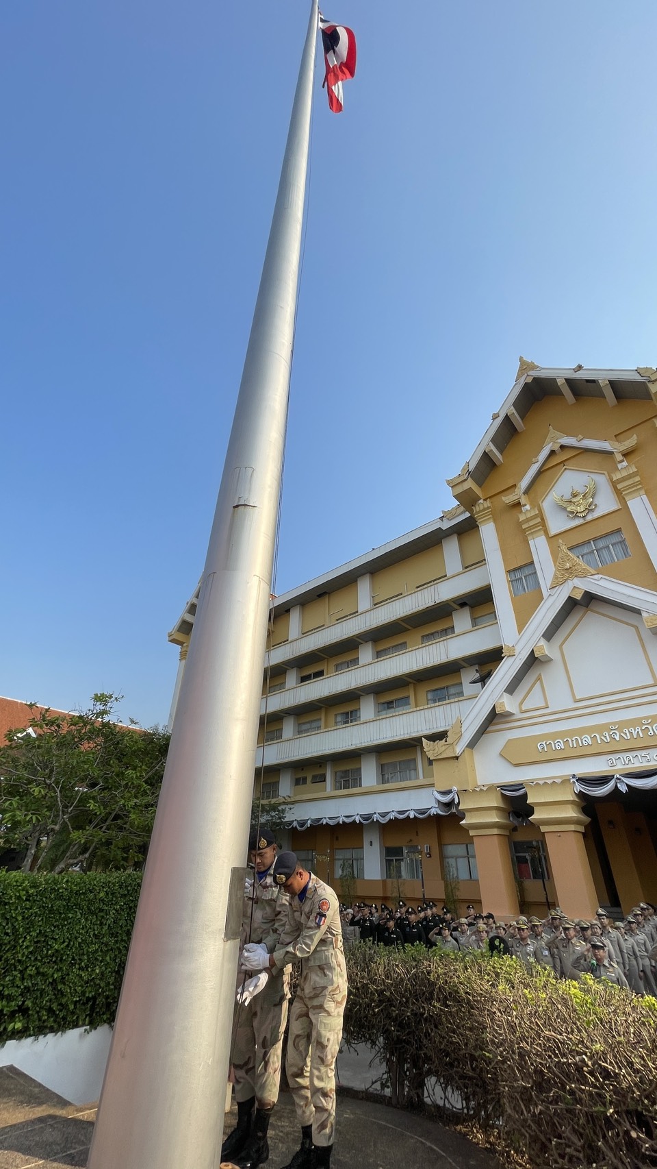 | วันจันทร์ที่ 30 มีนาคม 2569 เวลา 8.00 น. นายสาจิต จันทรศิริ ท้องถิ่นจังหวัด พร้อมด้วย ผอ.กลุ่มงาน / หัวหน้าฝ่ายบริหารทั่วไป และข้าราชการสำนักงานส่งเสริมการปกครองท้องถิ่นอุดรธานี ร่วมกิจกรรม เคารพธงชาติและร้องเพลงชาติไทย ประจำปีพุทธศักราช 2569 ณ บริเวณหน้าเสาธงศาลากลางจังหวัด โดยมี นายณัฐพงศ์ คำวงศ์ปิน รองผู้ว่าราชการจังหวัดอุดรธานี เป็นประธาน |