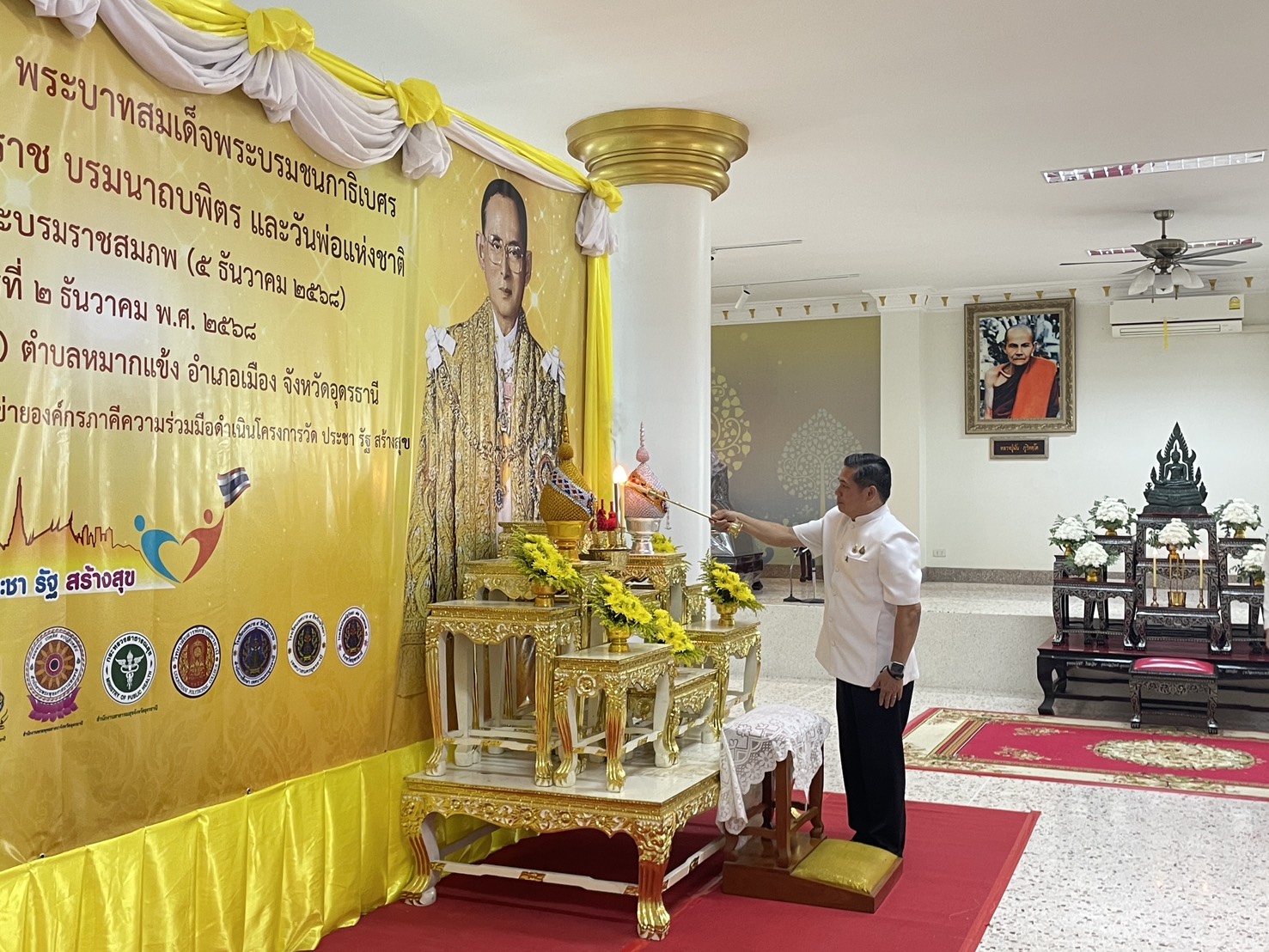 วันอังคารที่ 2 ธันวาคม 2568  เวลา  9.00 น. นายสาจิต จันทรศิริ ท้องถิ่นจังหวัด พร้อมด้วย นายวิทูร น้อยน้ำคำ ผู้อำนวยการกลุ่มงานกฎหมายระเบียบและเรื่องร้องทุกข์ ข้าราชการ สำนักงานส่งเสริมการปกครองท้องถิ่นอุดรธานี ร่วมกิจกรรมเฉลิมพระเกียรติ พระบาทสมเด็จพระบรมชนกาธิเบศร มหาภูมิพลอดุลยเดชมหาราช บรมนาถบพิตร วันชาติ และวันพ่อแห่งชาติ เนื่องในโอกาสวันคล้ายวันพระบรมราชสมภพ (5 ธันวาคม 2568 ) ณ ศาลาสถิตธรรมวิสุทธิ์ (ถิร ฐิตธมฺโม) วัดทิพยรัฐนิมิตร (วัดบ้านจิก) ตำบลหมากแข้ง อำเภอเมือง  จัดโดย เทศบาลนครอุดรธานี ร่วมกับ เครือข่ายองค์กรภาคีความร่วมมือดำเนินโครงการวัด ประชา รัฐ สร้างสุข  โดยมี นายพิสิษฐ์ชัย อภัยปิยกุล. รองผู้ว่าราชการจังหวัดอุดรธานี เป็นประธาน