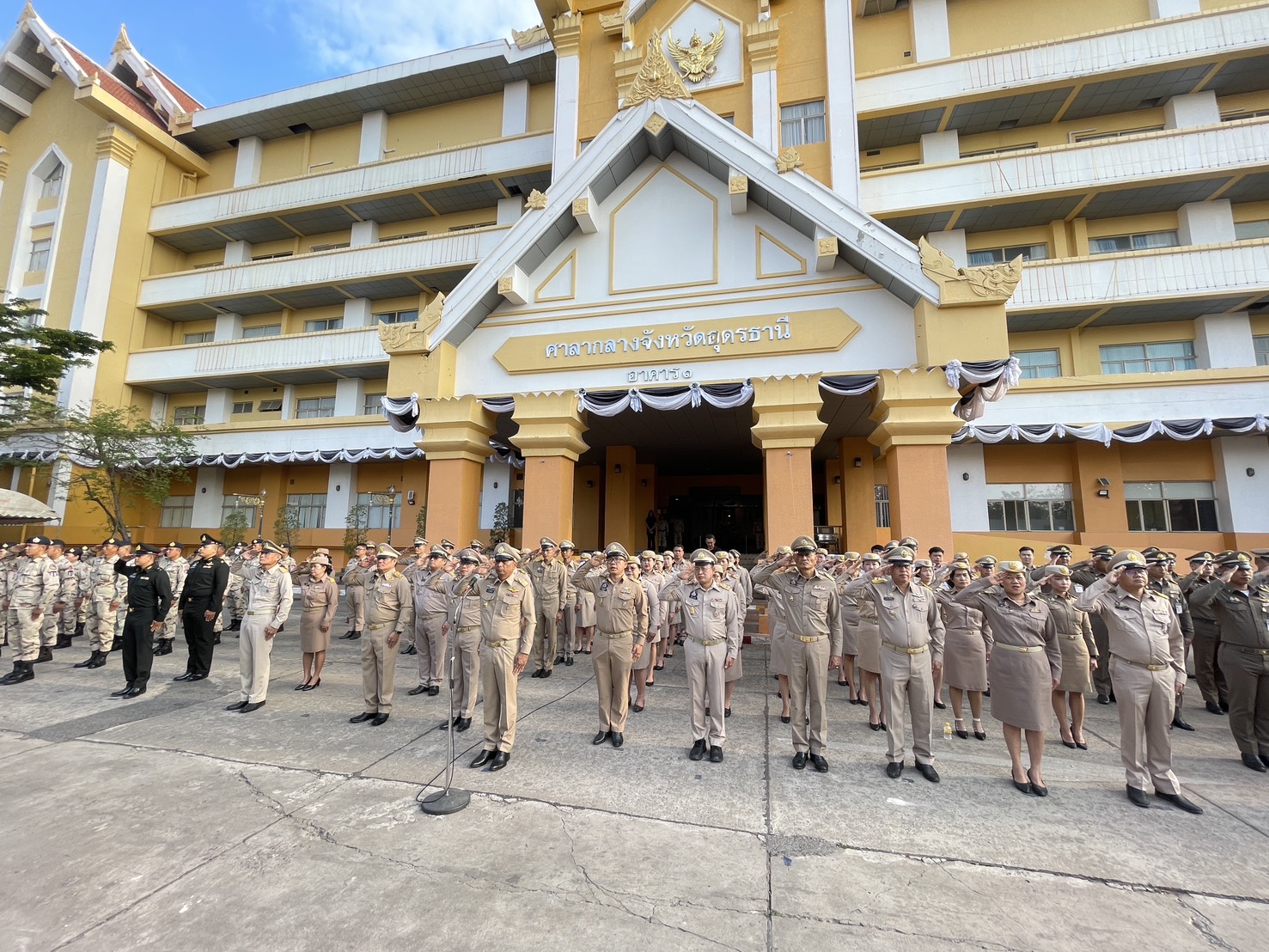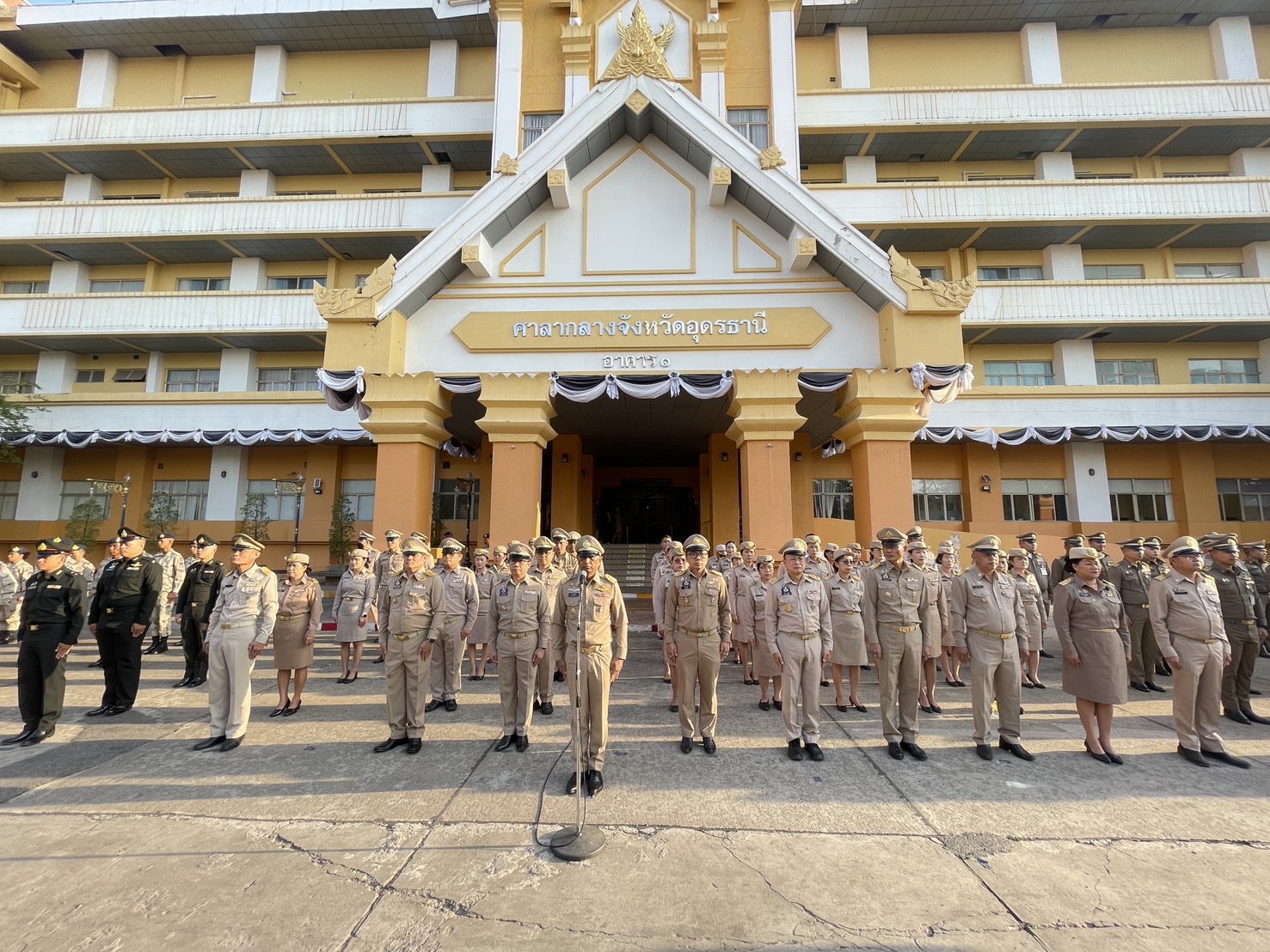 | วันจันทร์ที่ 26 มกราคม 2569 เวลา 8.00 น. นายสาจิต จันทรศิริ ท้องถิ่นจังหวัด พร้อมด้วย ผอ.ทุกกลุ่มงาน หัวหน้าฝ่ายบริหารทั่วไป และข้าราชการสำนักงานส่งเสริมกปกครองท้องถิ่นอุดรธานี ร่วมกิจกรรม เคารพธงชาติและร้องเพลงชาติไทย ประจำปีพุทธศักราช 2569 ณ บริเวณหน้าเสาธงศาลากลางจังหวัด โดยมี นายราชันย์ ซุ้นหั้ว ผู้ว่าราชการจังหวัดอุดรธานี เป็นประธาน |